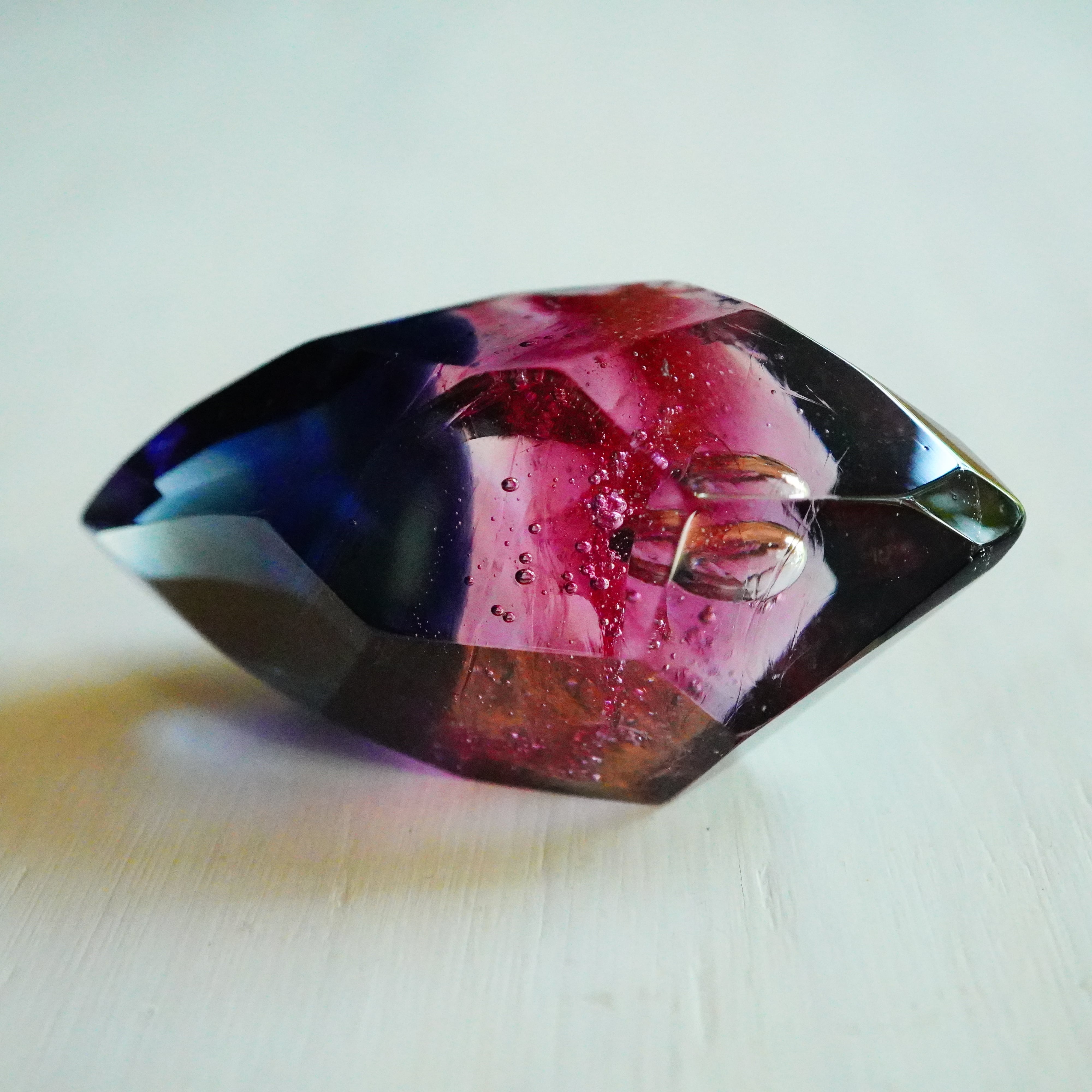 作品は、ガラスの原石から丁寧に削り出し、成型、研磨して仕上げています。1つ1つが全て異なる作品になるため、そのユニークな特性を楽しんで選んでいただけたら幸いです。