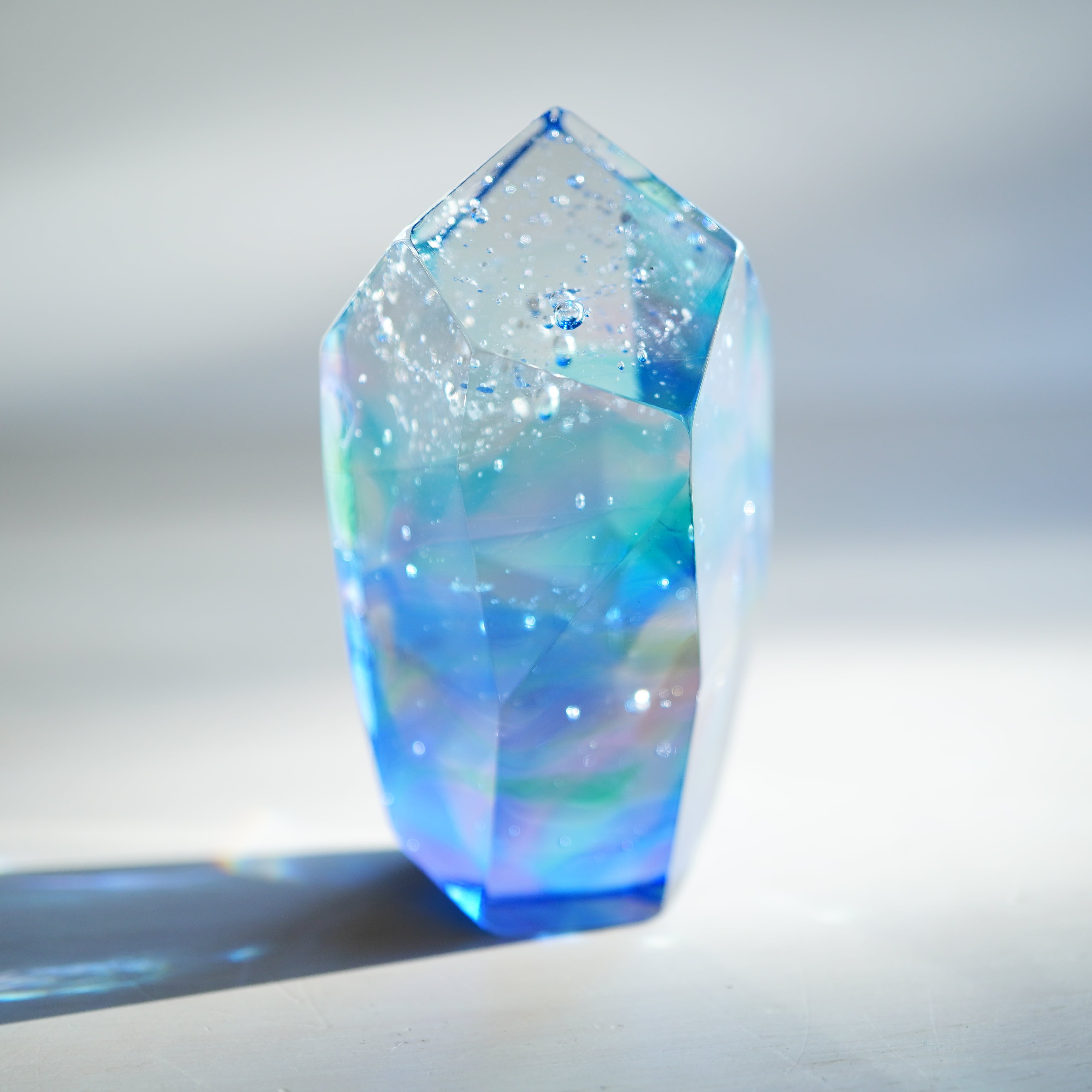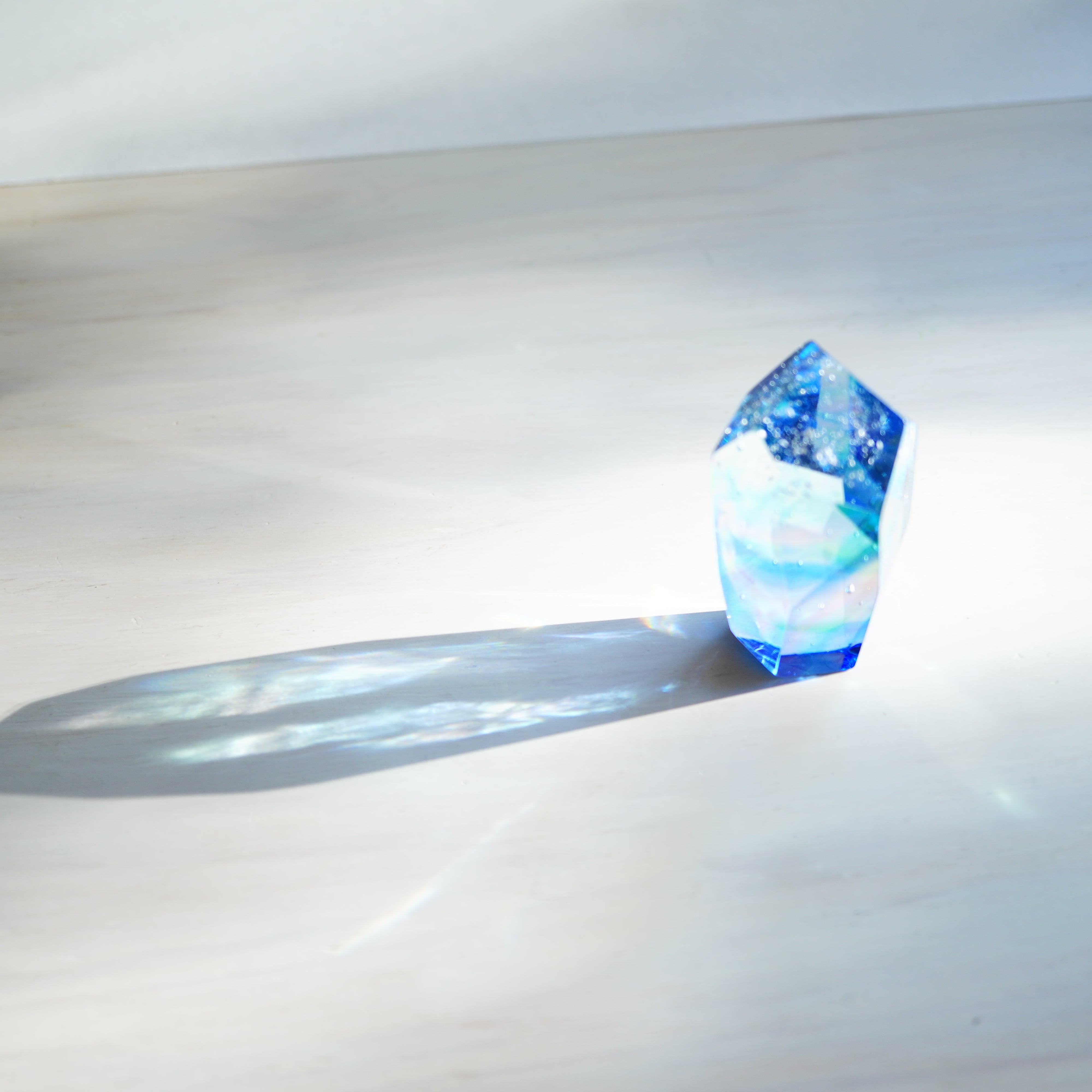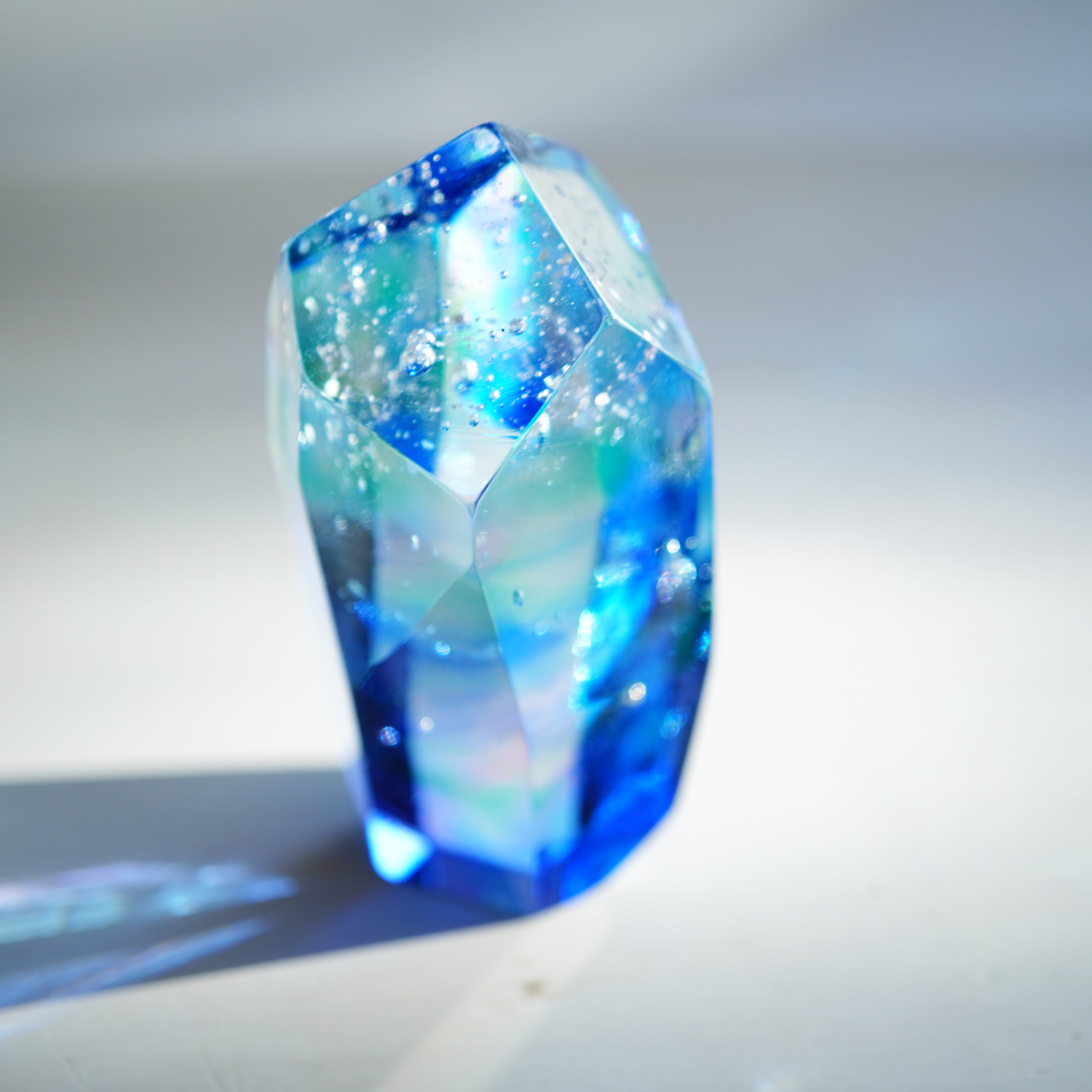 作品は、ガラスの原石から丁寧に削り出し、成型、研磨して仕上げています。1つ1つが全て異なる作品になるため、そのユニークな特性を楽しんで選んでいただけたら幸いです。