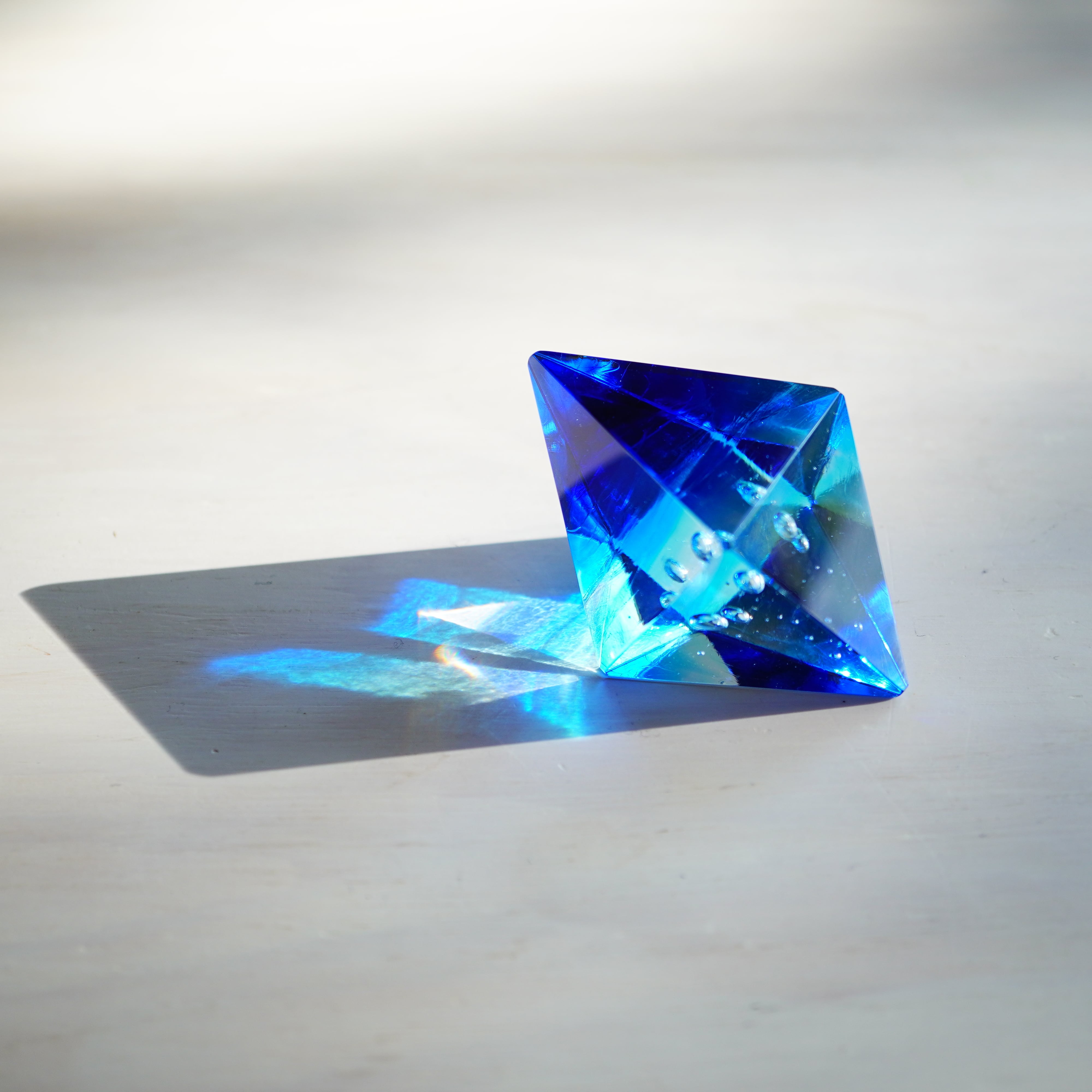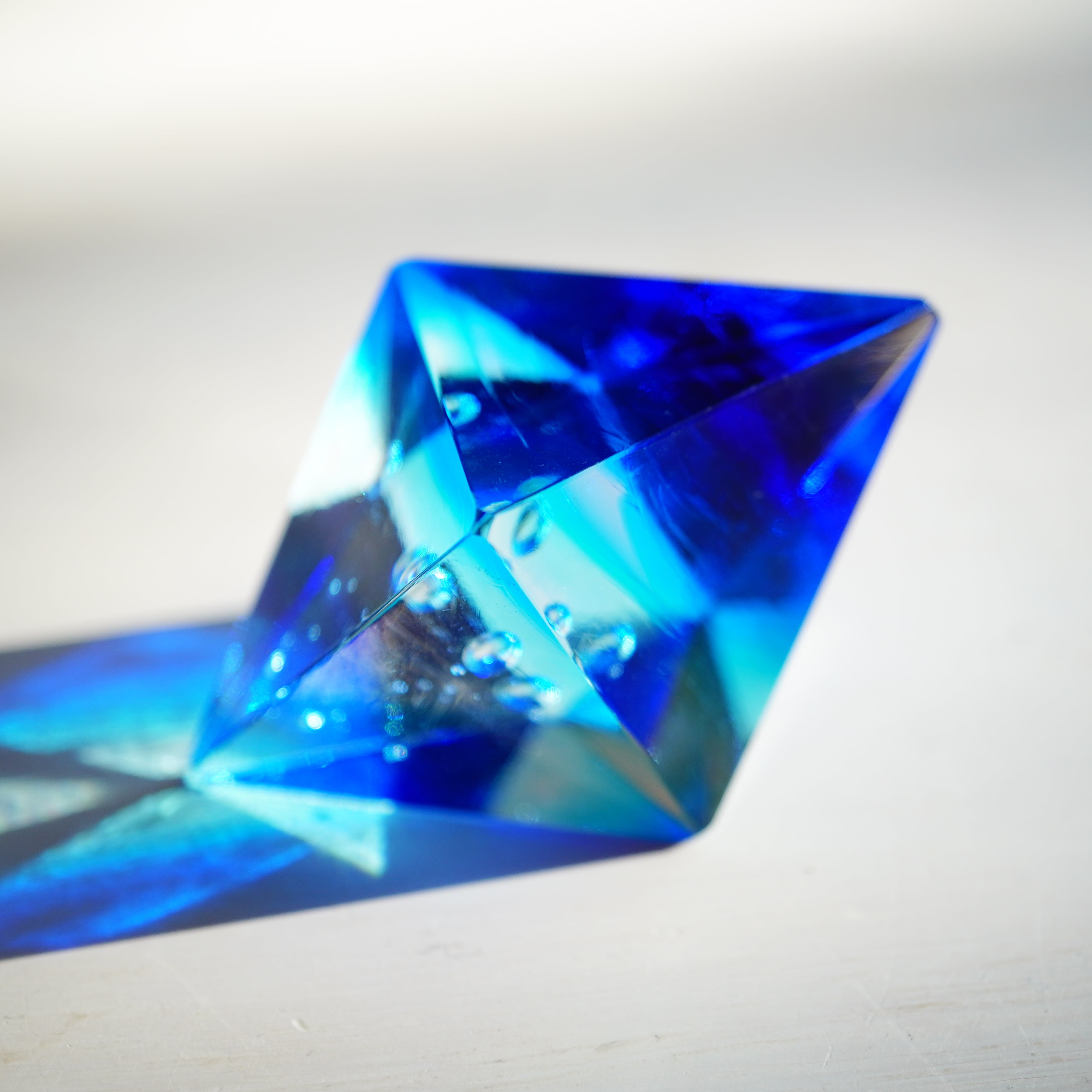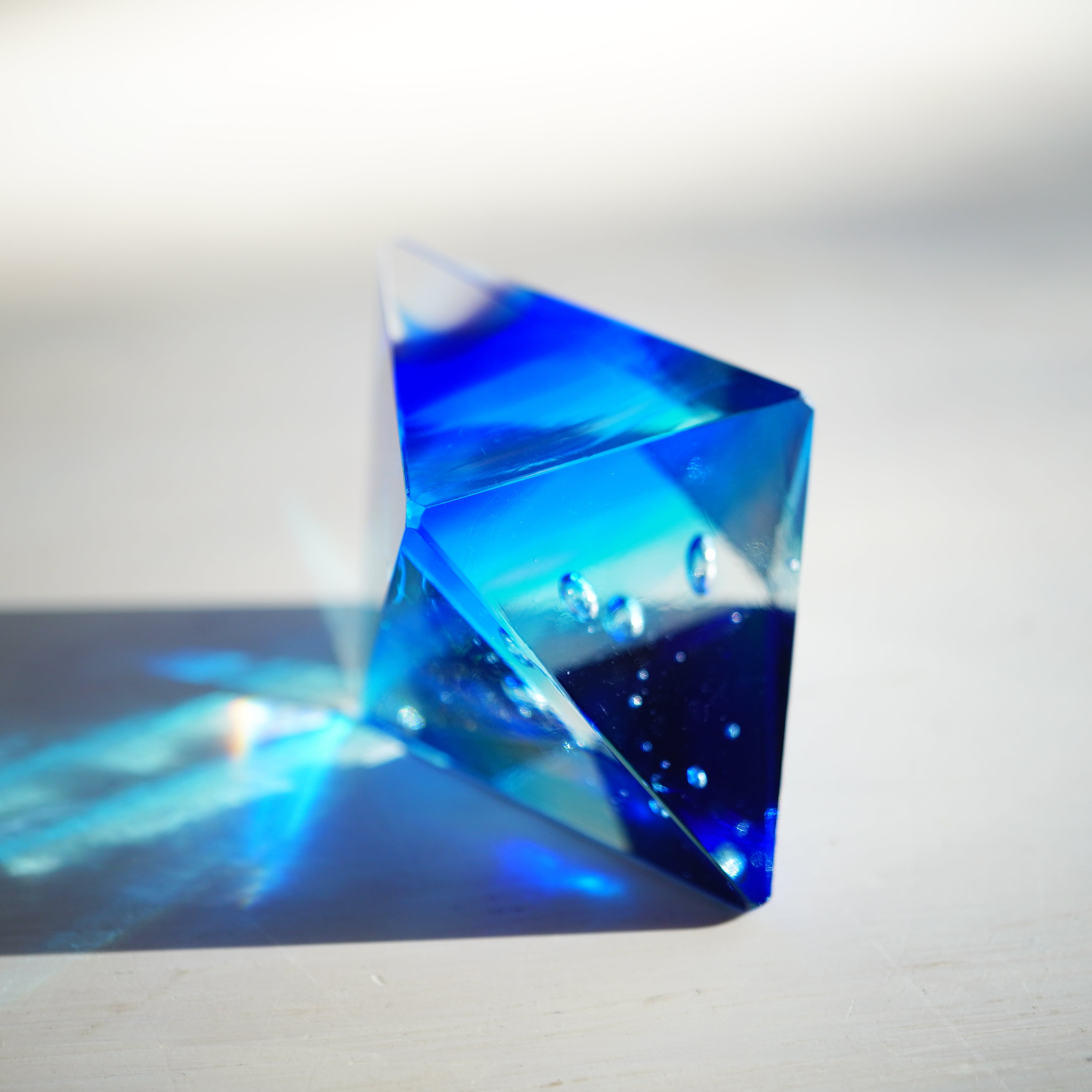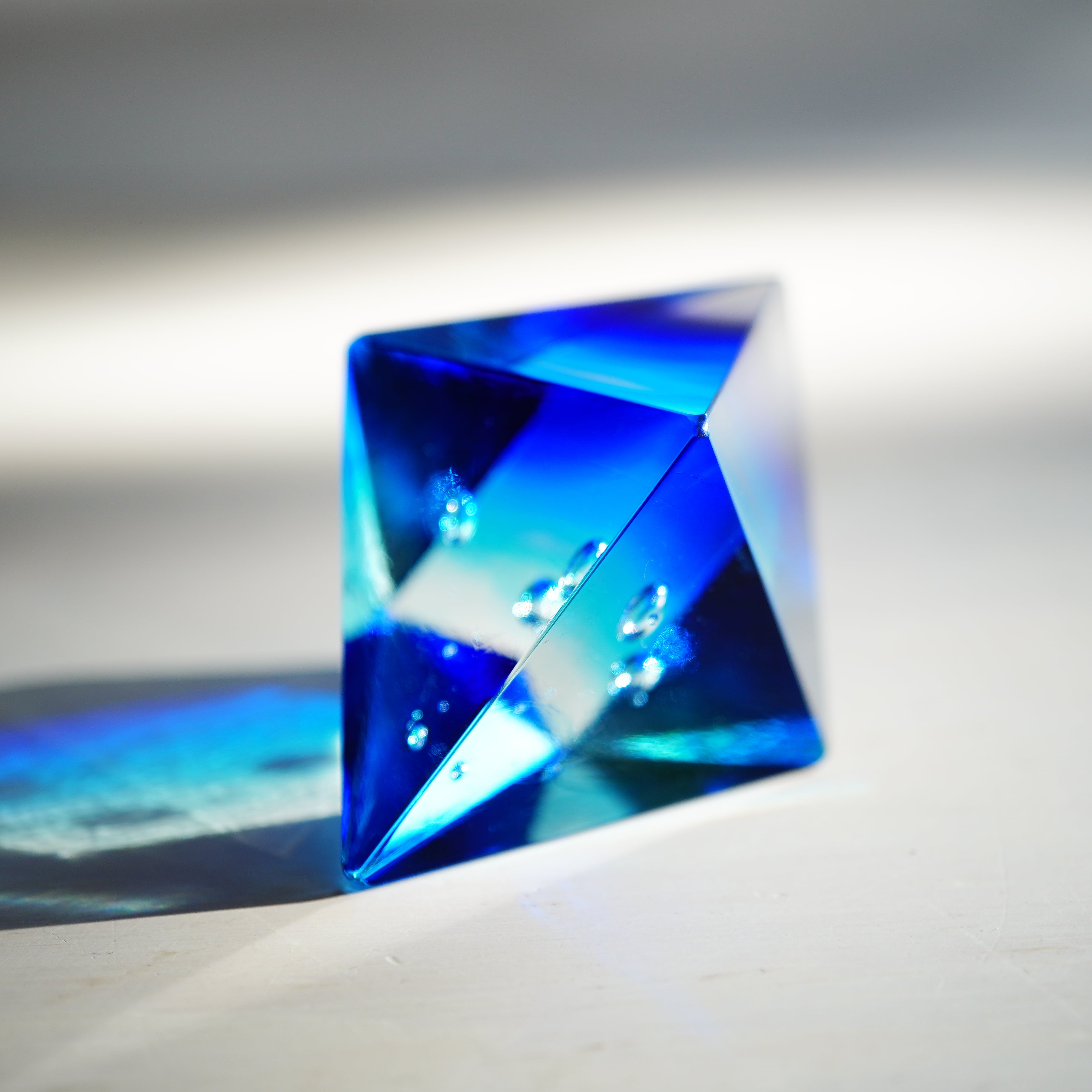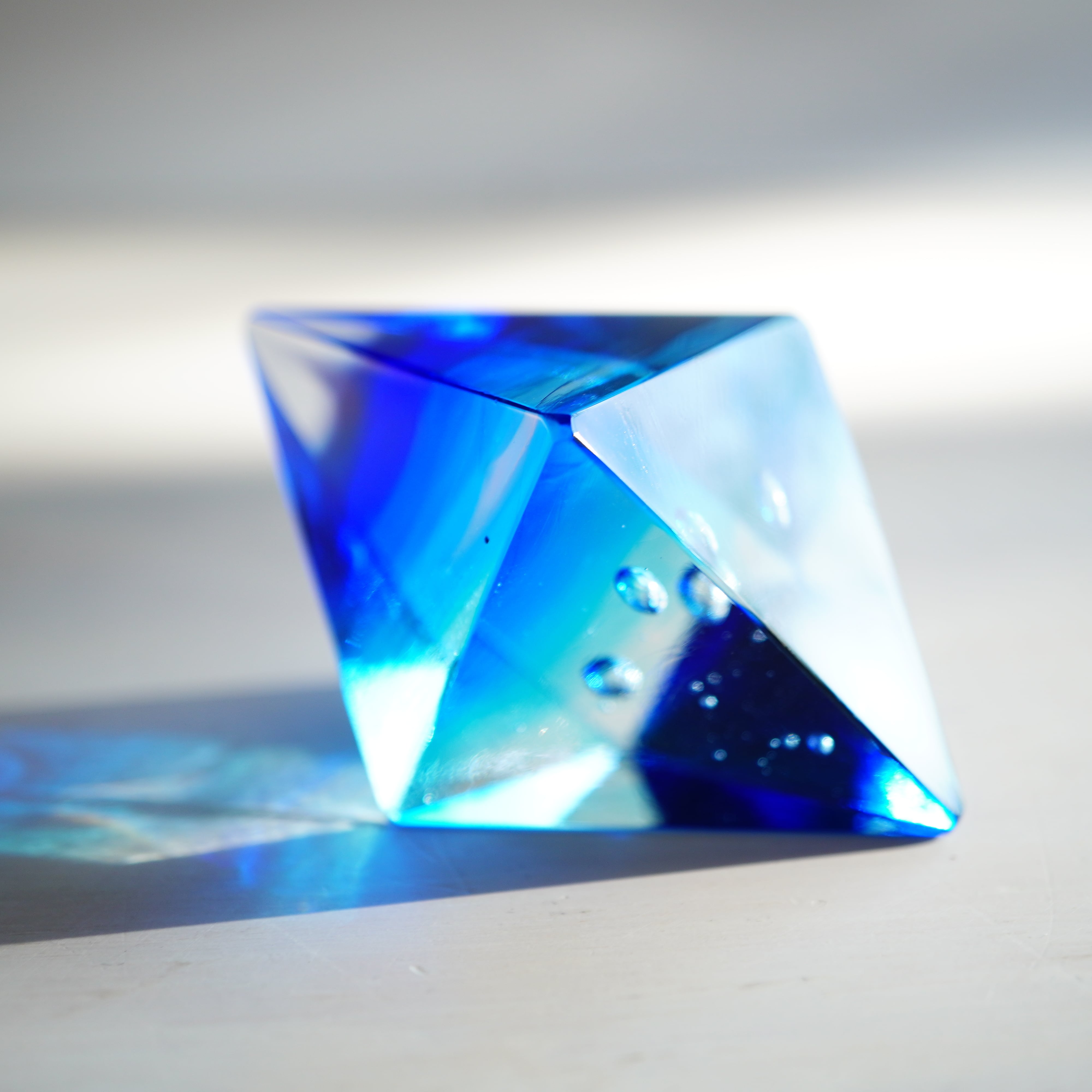 『碧昇空・八面体』は、空が高く澄み渡る様子を想起させるような澄んだ青色が特徴です。